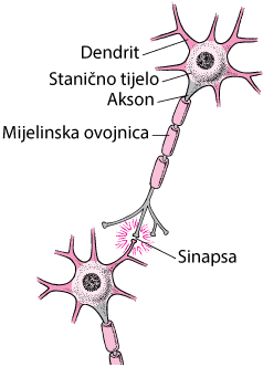 Živčana stanica (neuron) sastoji se od velikog staničnog tijela i živčanih vlakana - jednog izduženog produžetka (akson) za slanje impulsa i, obično, mnogo grana (dendriti) za primanje impulsa. Impuls iz aksona prelazi sinapsu (spoj između dviju živčanih stanica) do dendrita druge stanice.